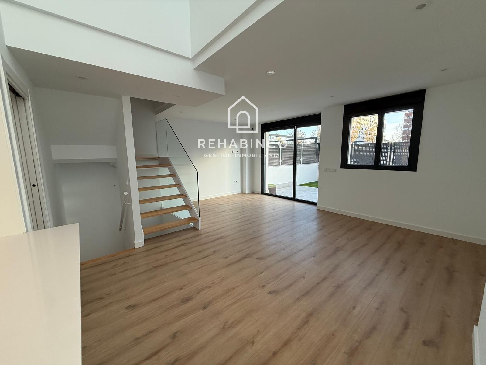 Planta baja con cocina de diseño equipada, salón-comedor de doble altura, dormitorio y baño completo, con acceso directo al jardín.